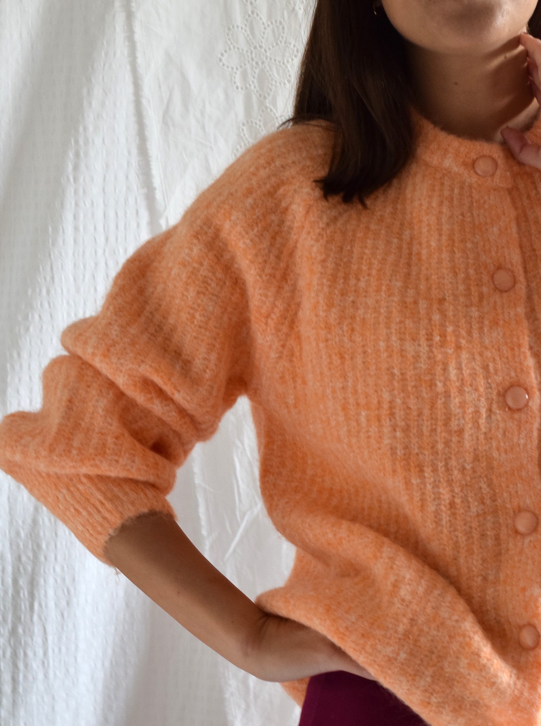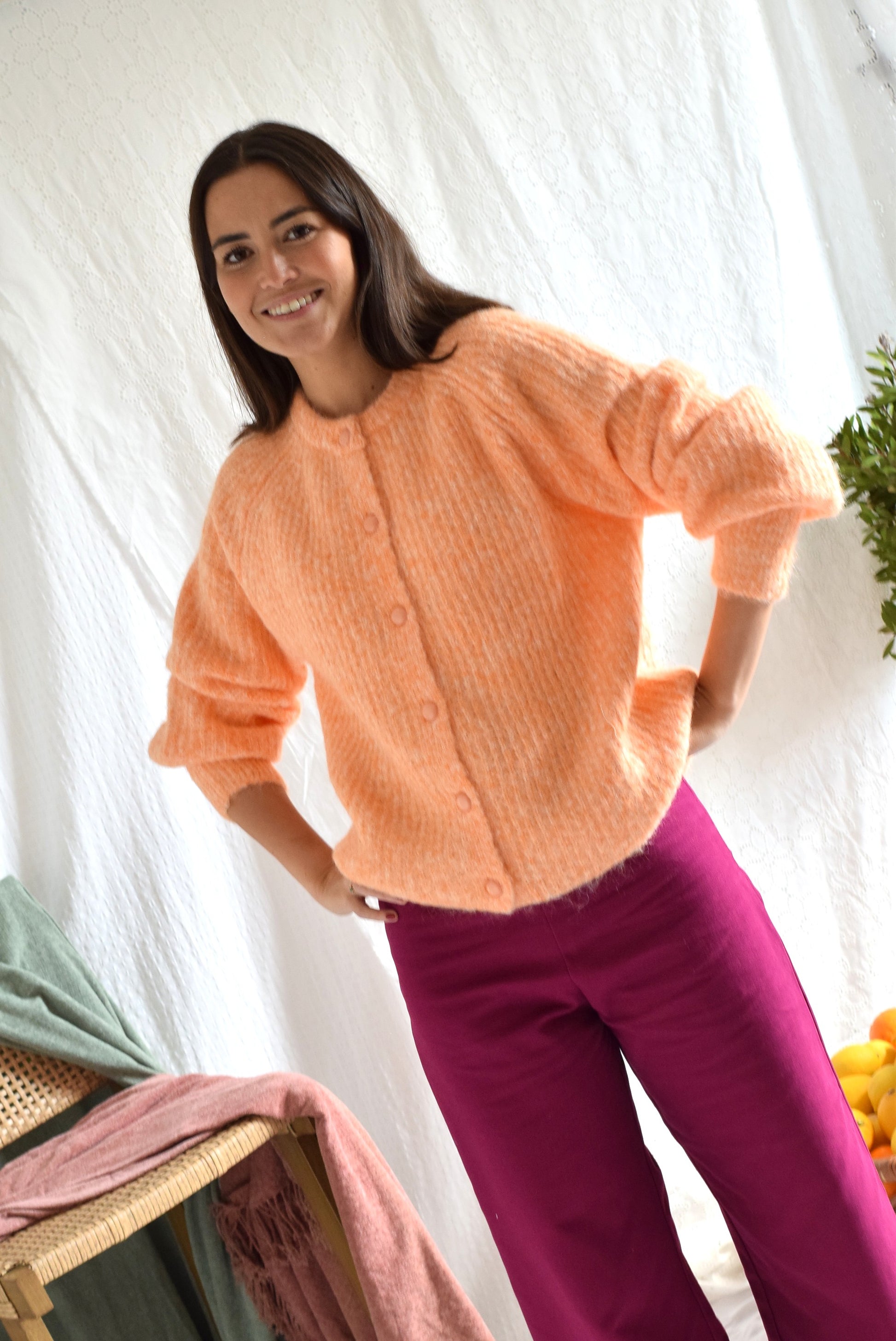 Chaqueta de cuello redondo. Botones del color de la chaqueta.