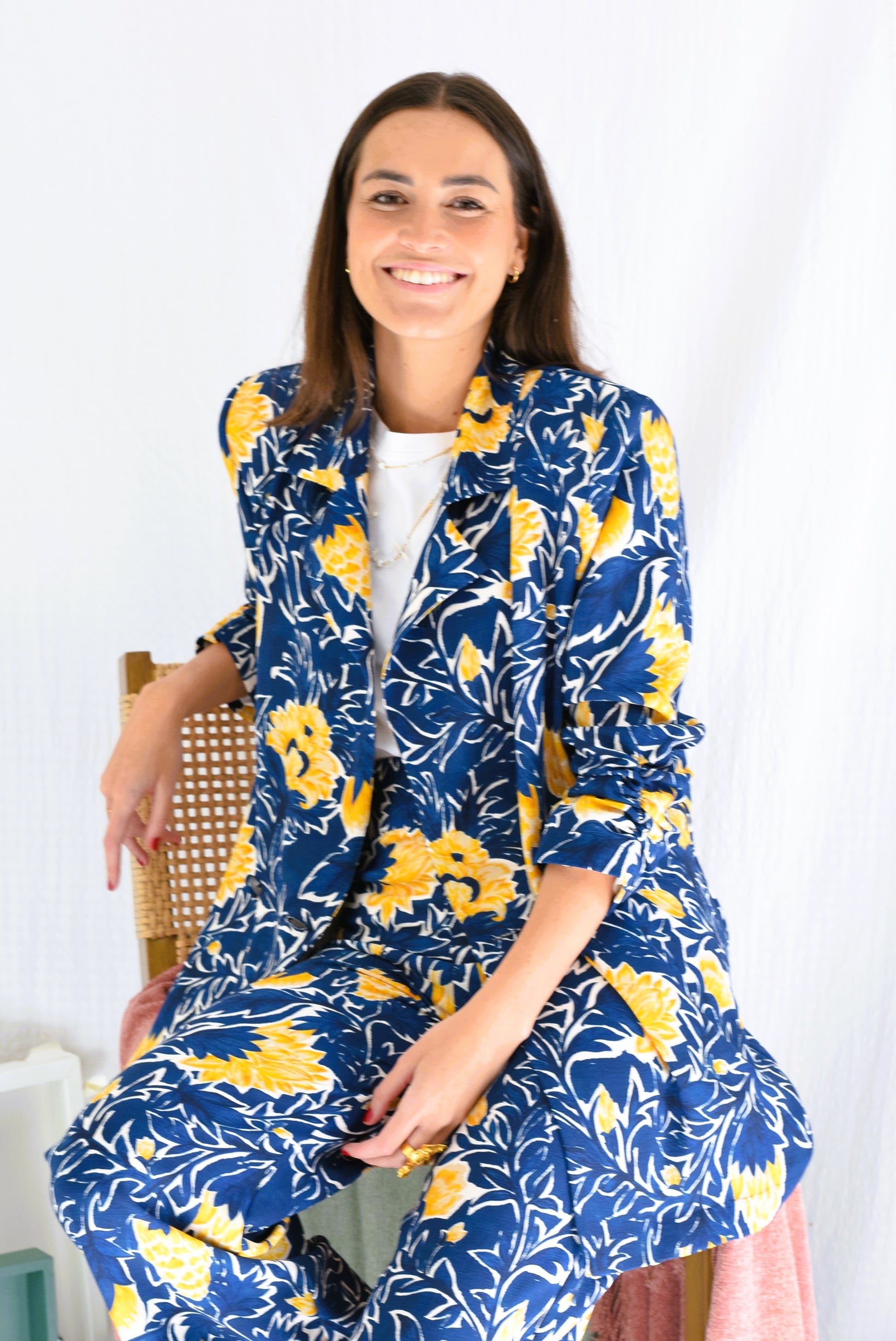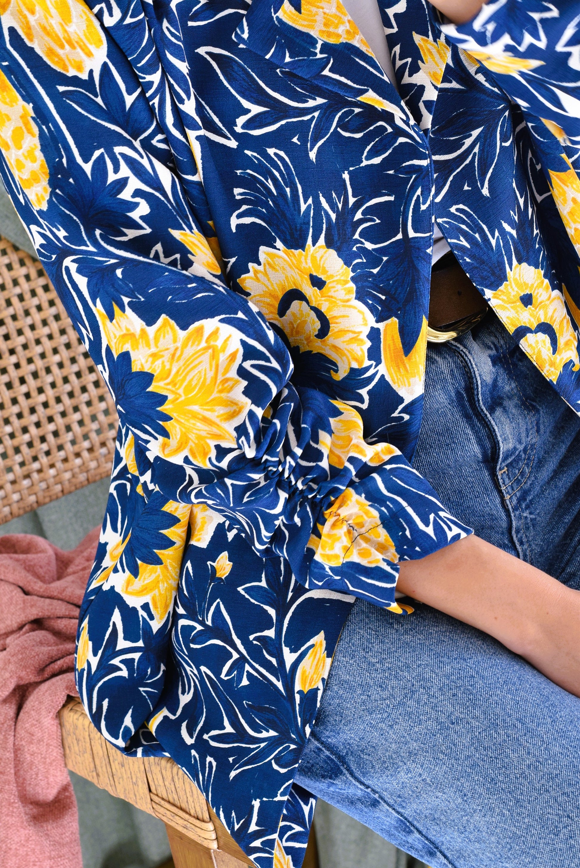 CHAQUETA NONA - FLOR AZUL Y AMARILLA