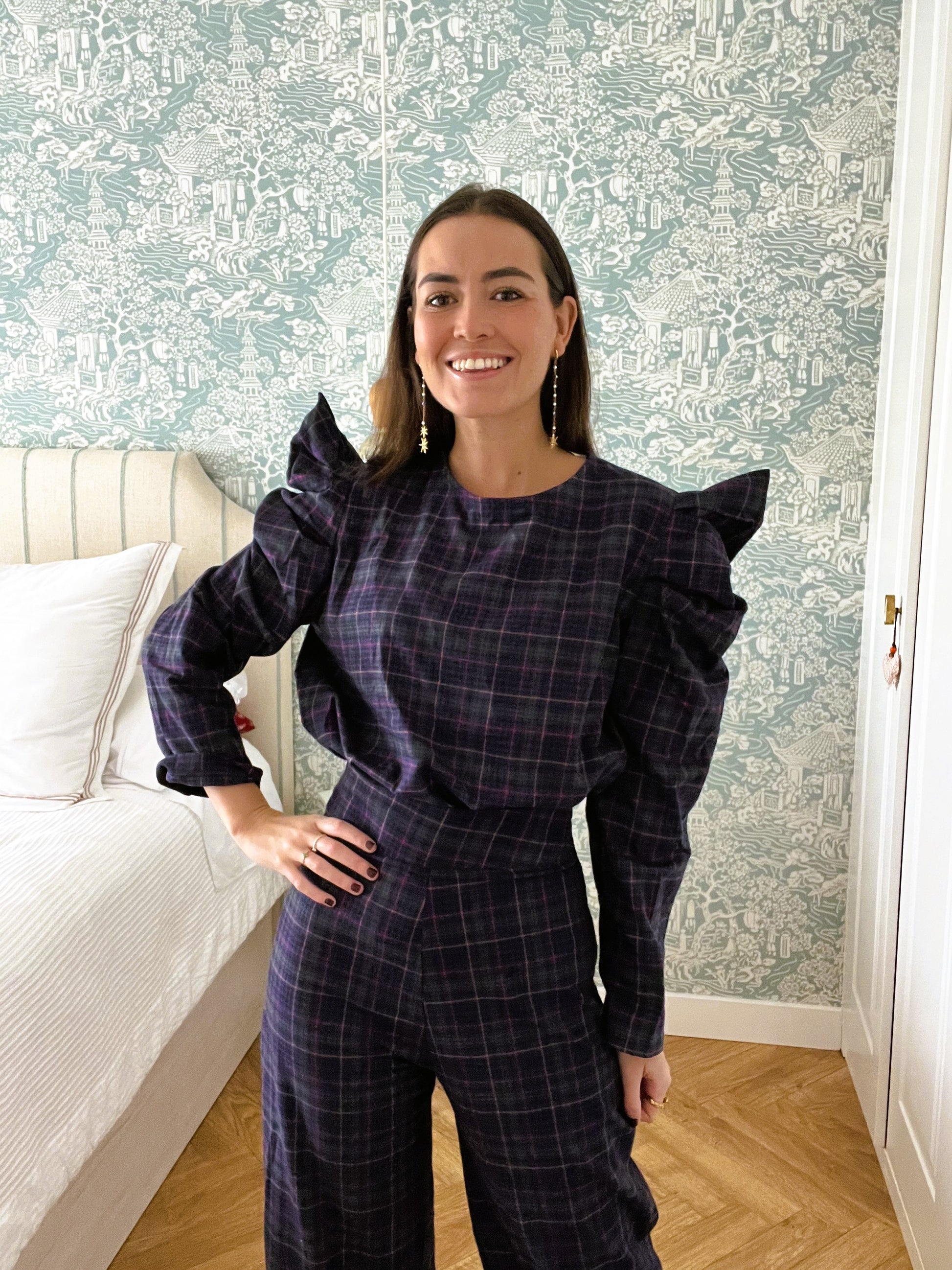 Camisa de vichy con hombros subidos haciendo picos