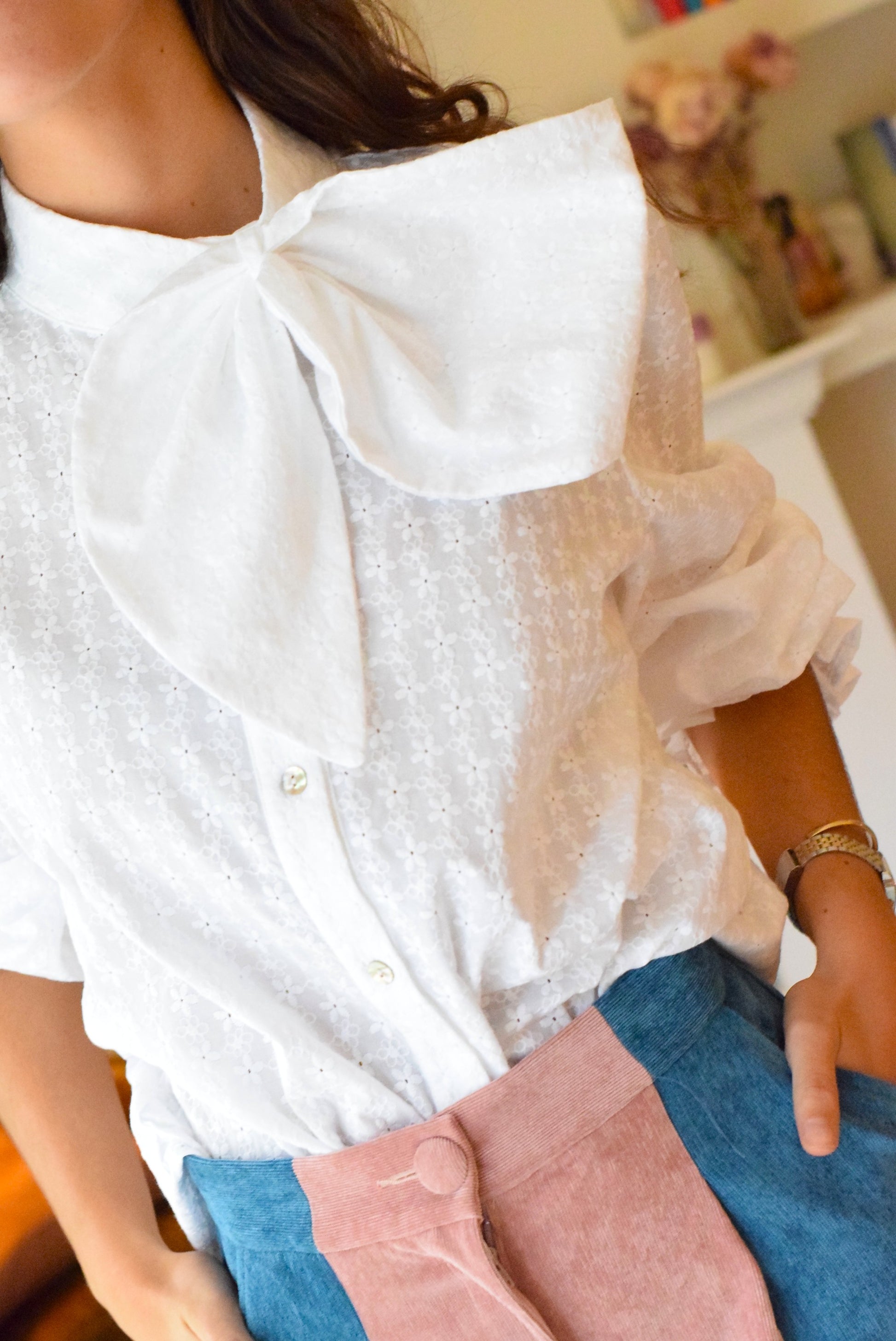 Blusa con un gran lazo cayendo a un lado. Una blusa muy especial, perfecta para llevar con chaqueta encima y dar importancia al lazo.