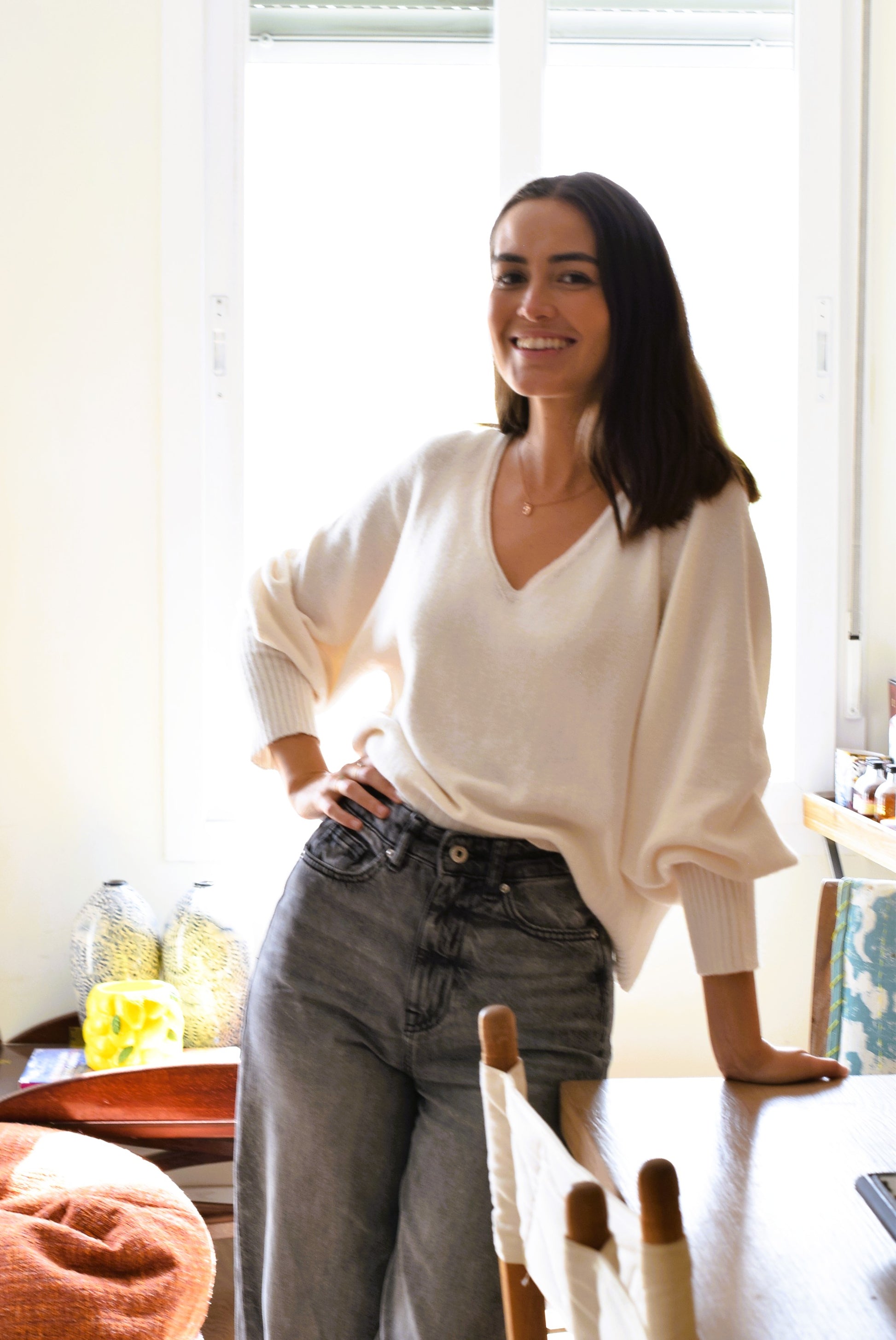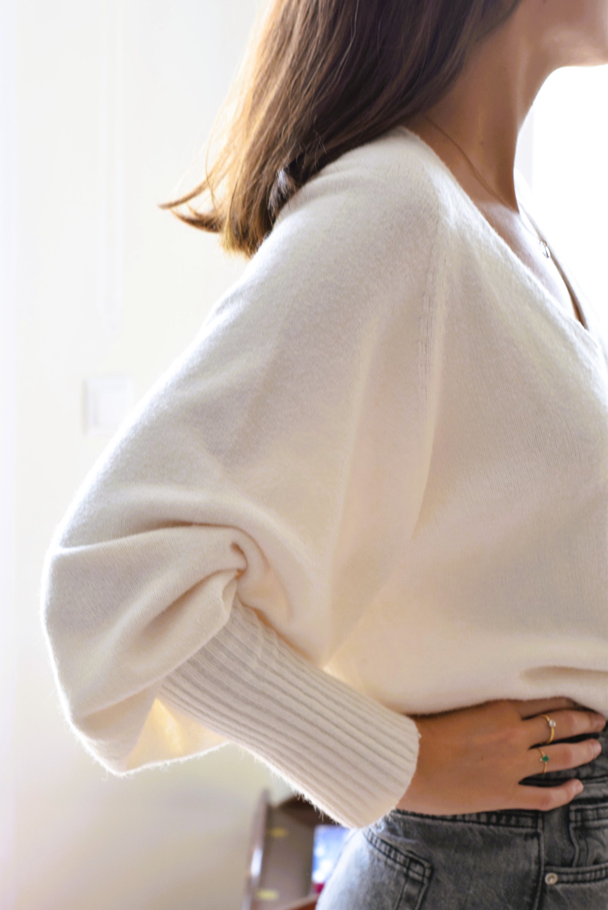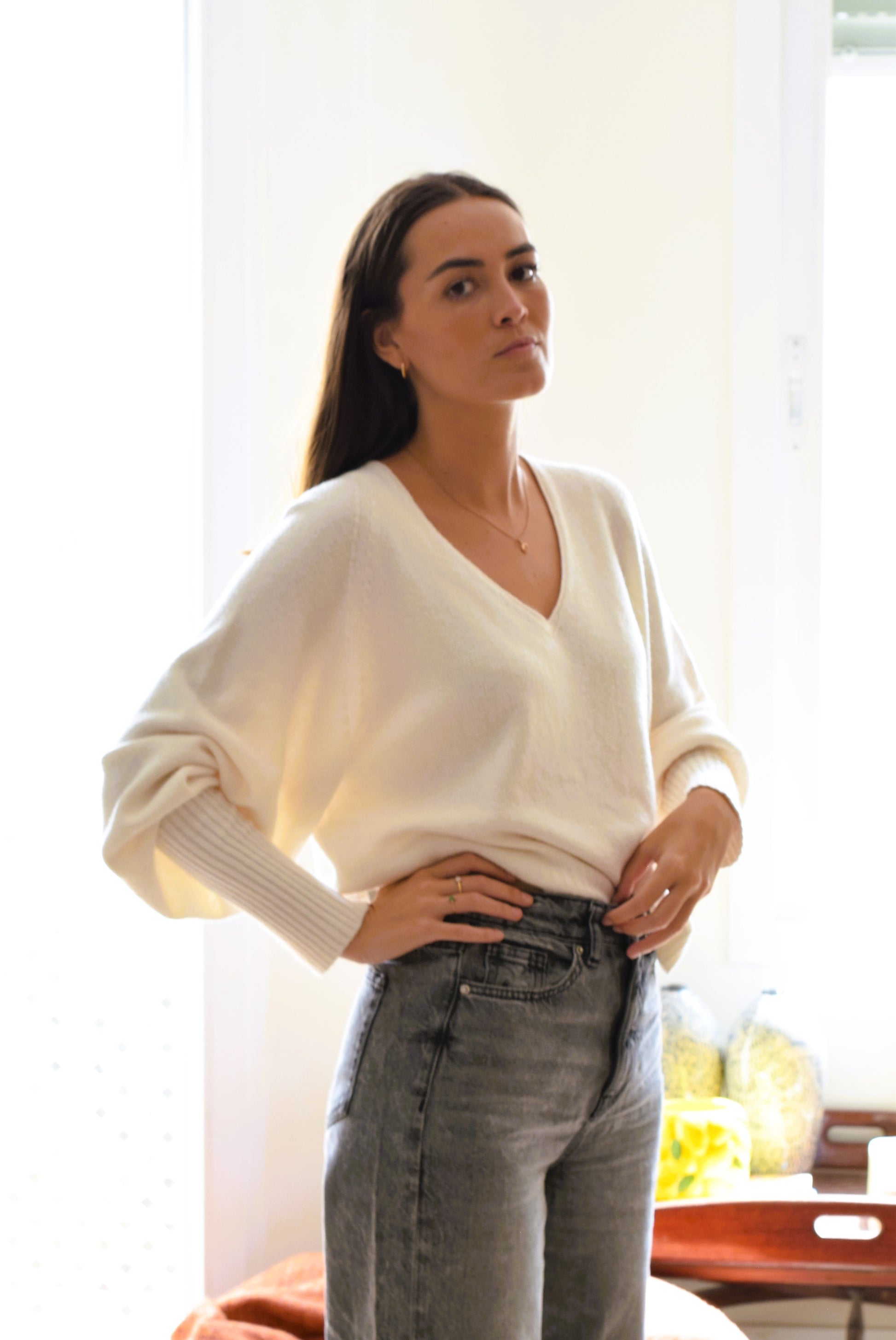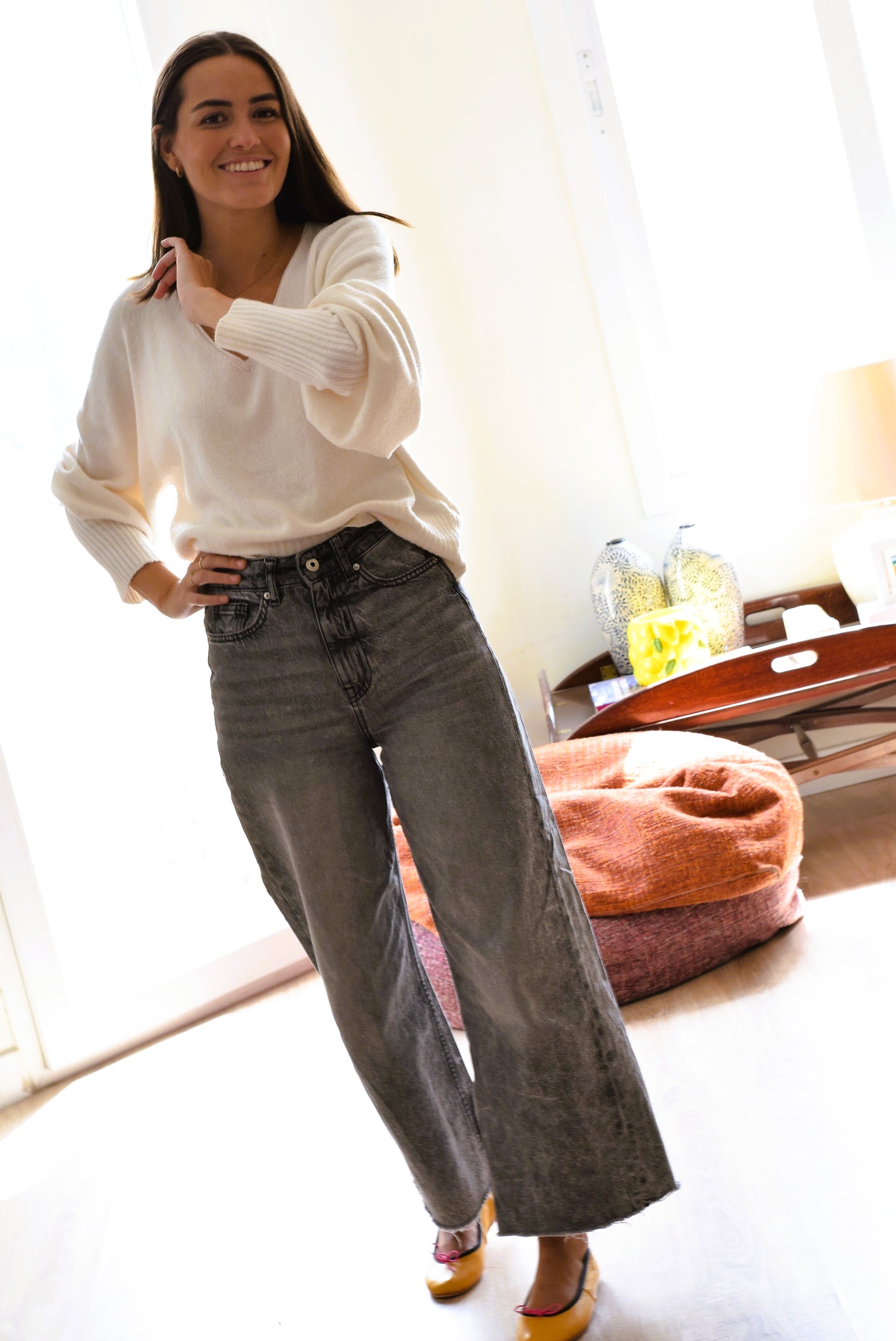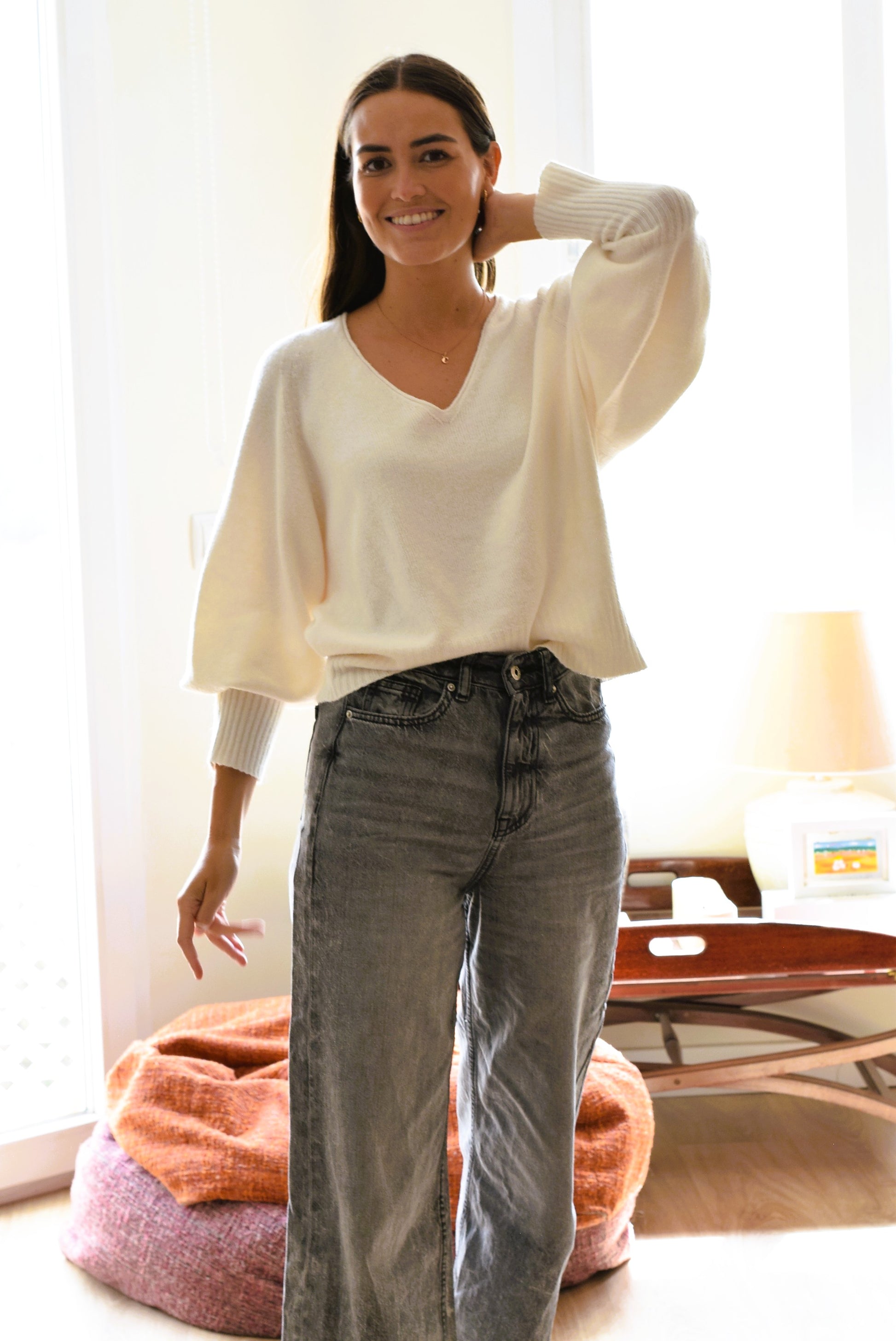 Jersey de punto con escote pico. Puño estrecho hasta mitad del brazo para hacer efecto en la manga. Un Jersey básico que te combinará con todo.