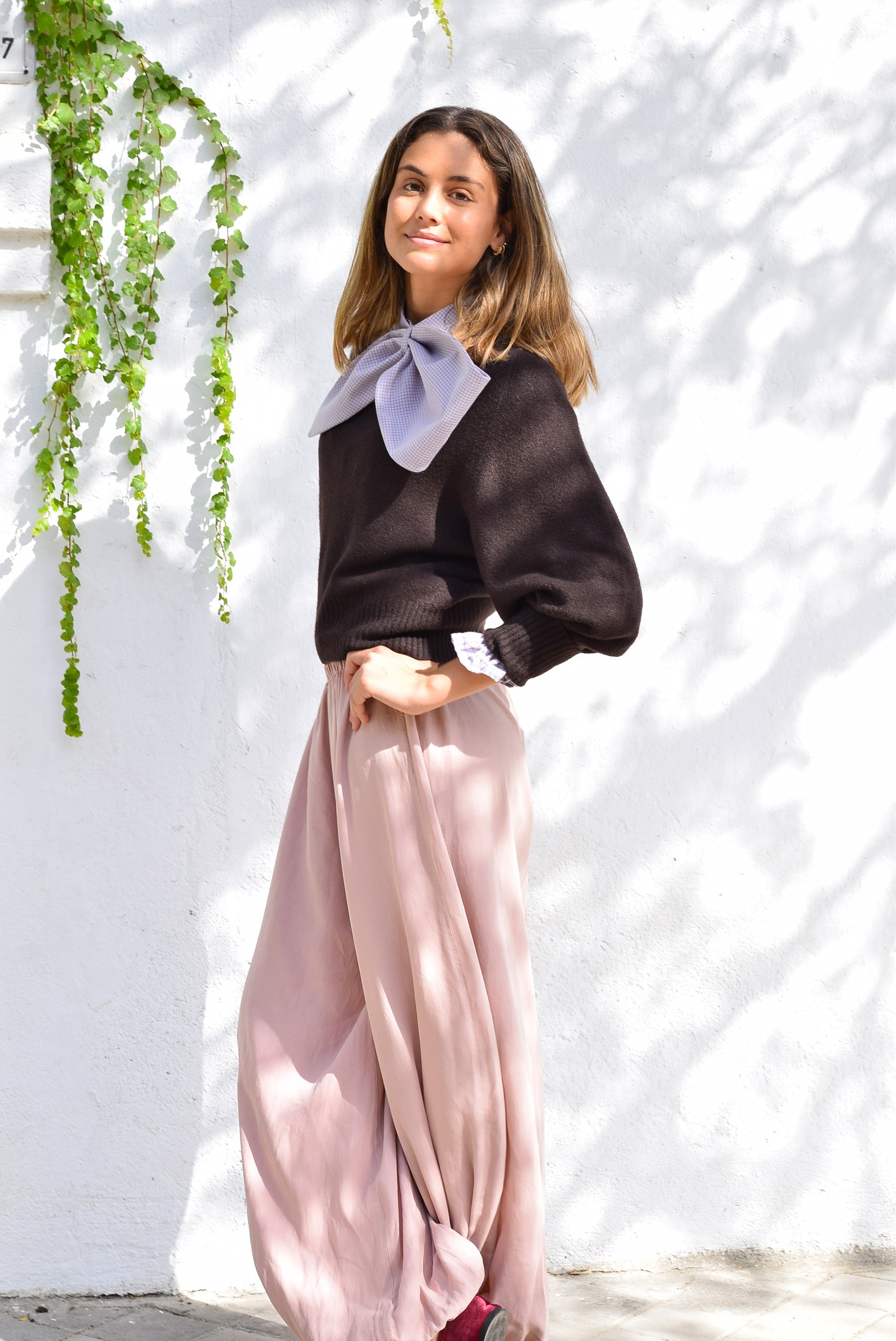 Jersey de punto con escote pico. Puño estrecho hasta mitad del brazo para hacer efecto en la manga. Un Jersey básico que te combinará con todo.