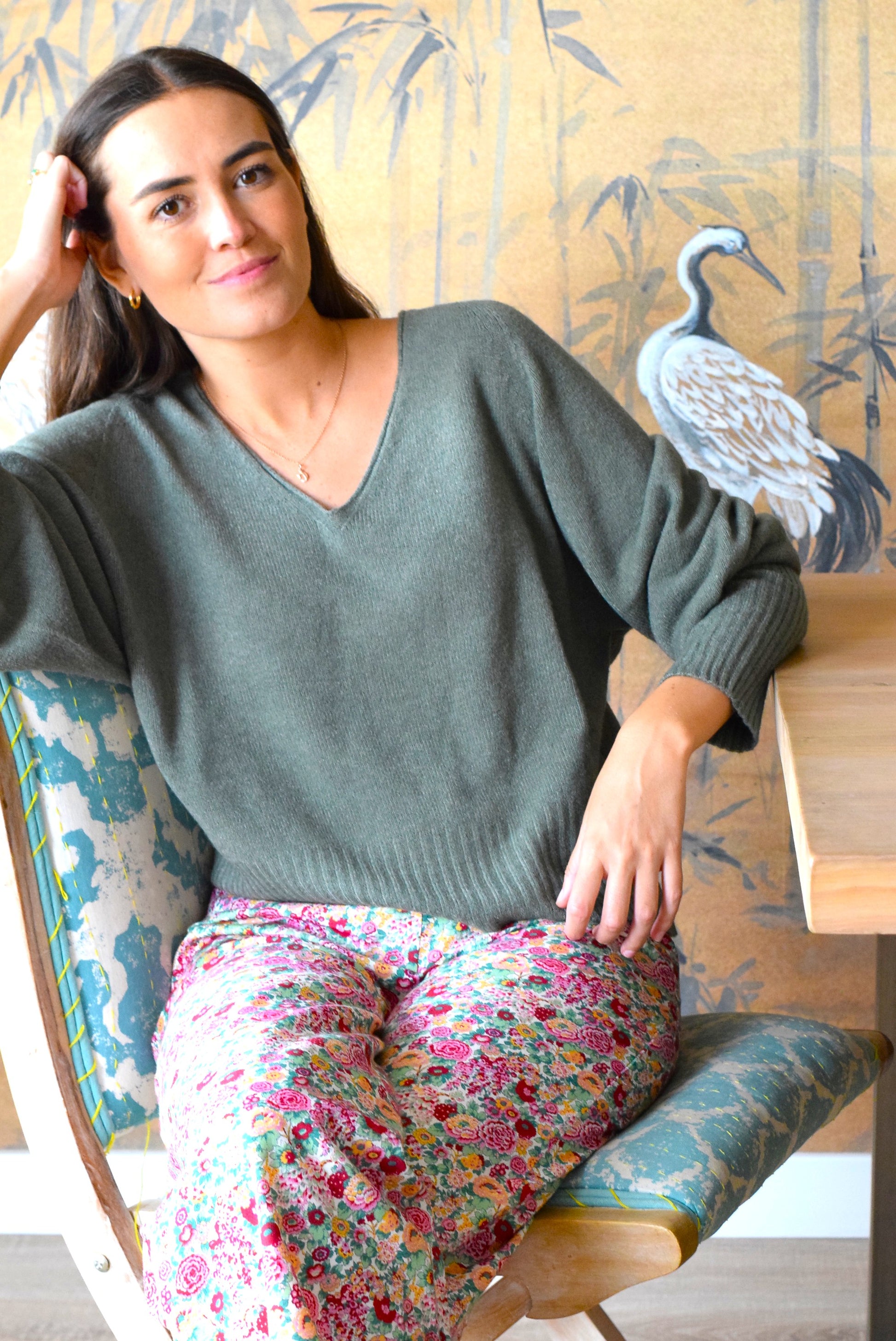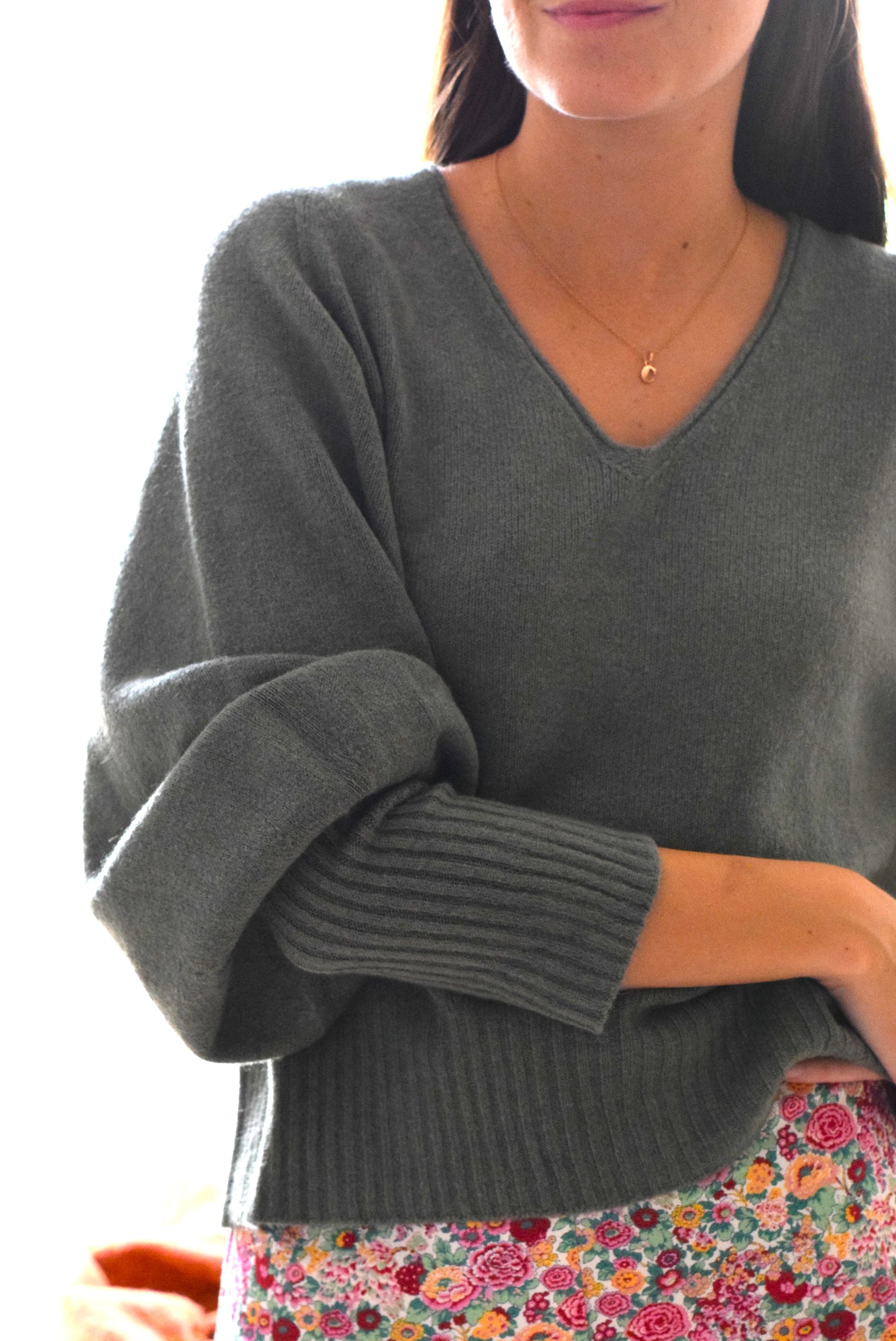 Jersey de punto con escote pico. Puño estrecho hasta mitad del brazo para hacer efecto en la manga. Un Jersey básico que te combinará con todo.