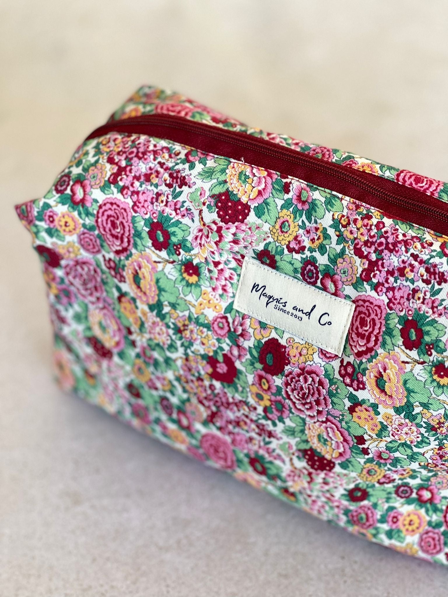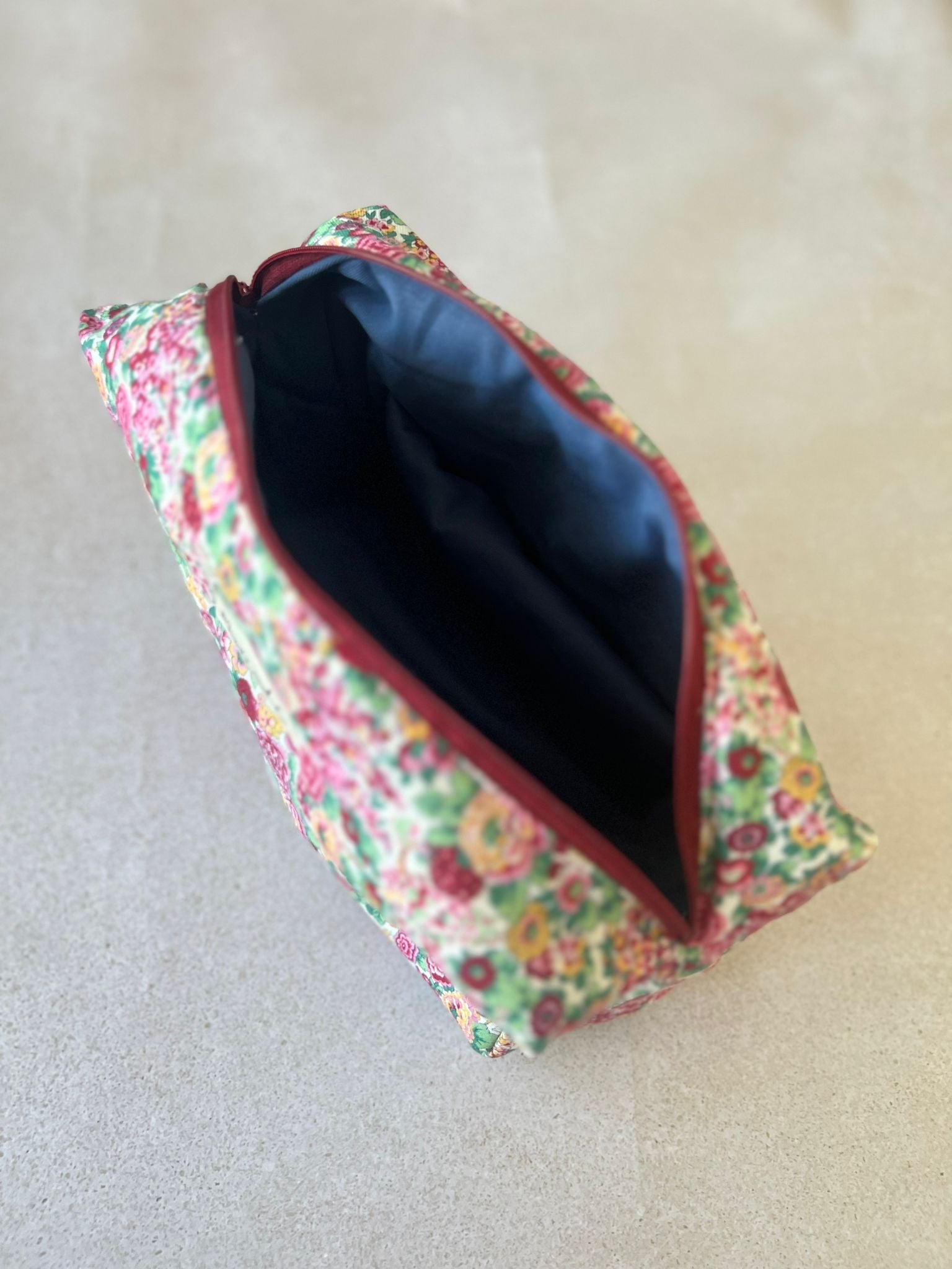 Neceser de tejido LIBERTY FABRICS con forro interior acolchado. Cierre de cremallera de otro color para hacer contraste. Perfecto como bolsa de aseo, bolsa de pinturas o bolsa multiusos para el bolso. Se puede personalizar con las iniciales.