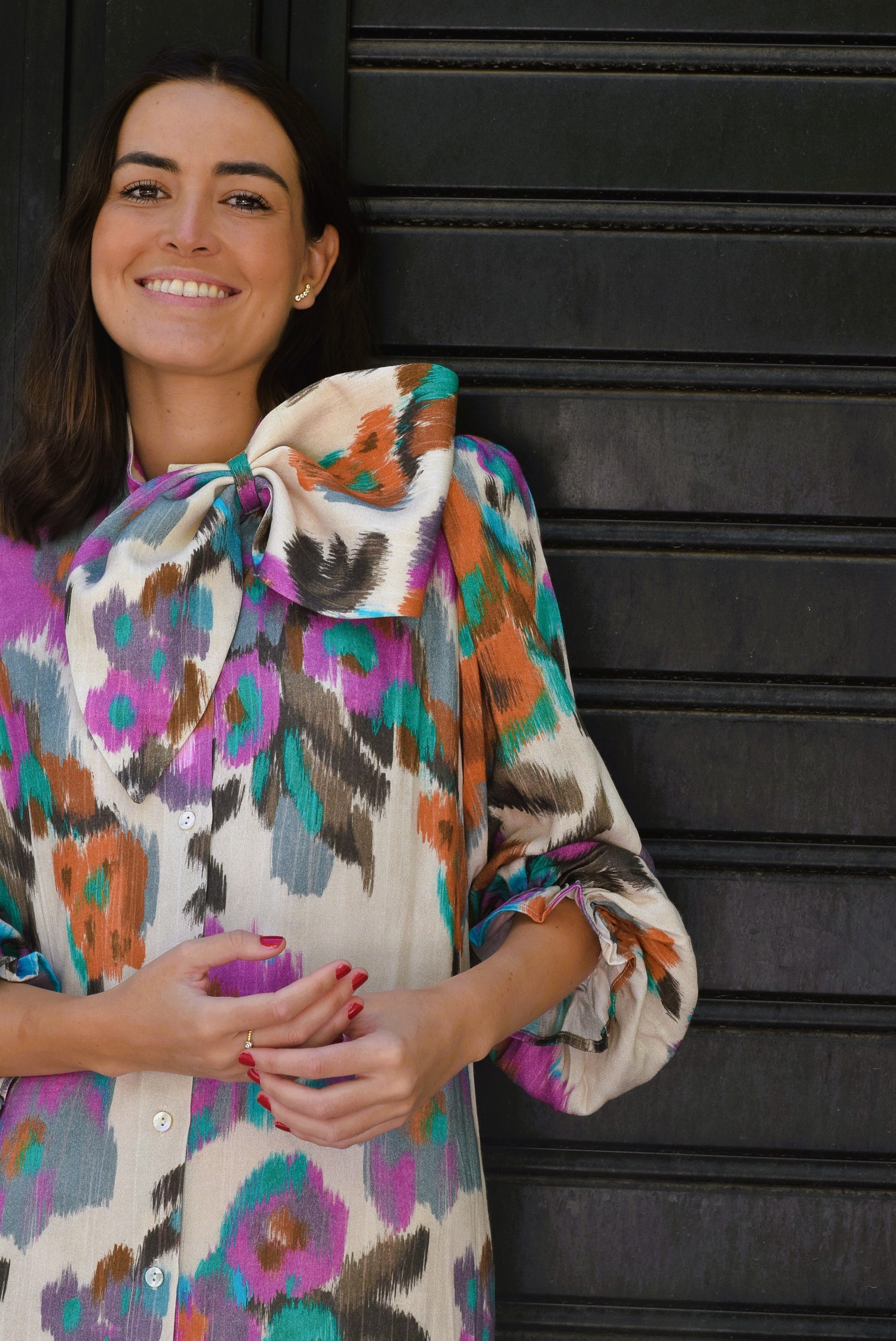 Blusa con un gran lazo cayendo a un lado.